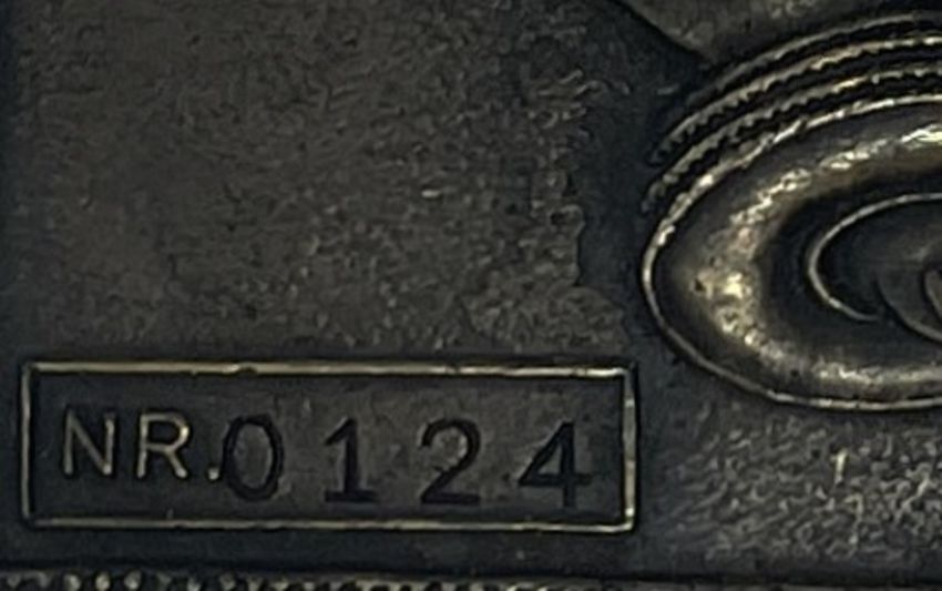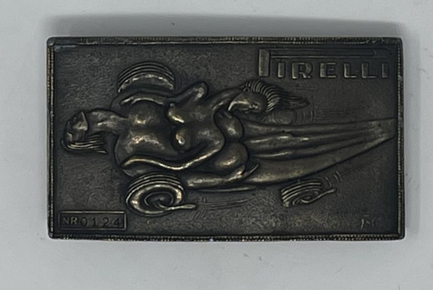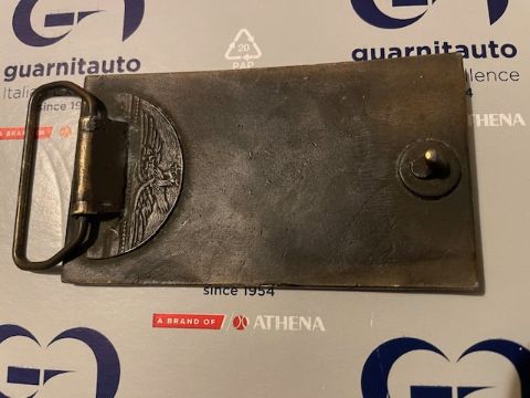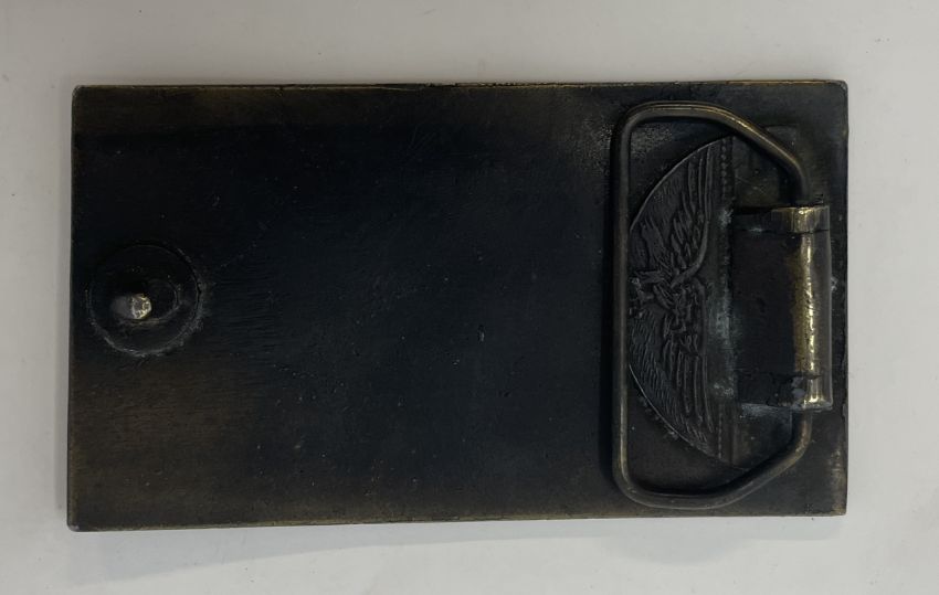 A brass erotic art belt buckle numbered NR0124 to the bottom left face and measuring 10cm x 5.6cm.